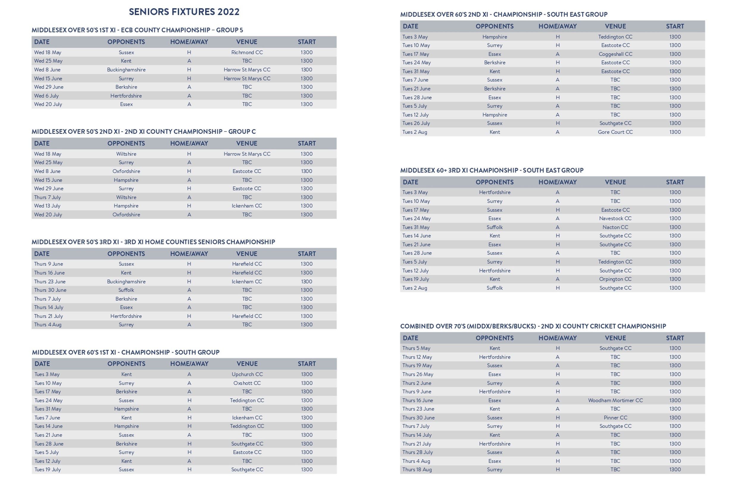 Middlesex Seniors Over 50's 3rd XI Fixtures